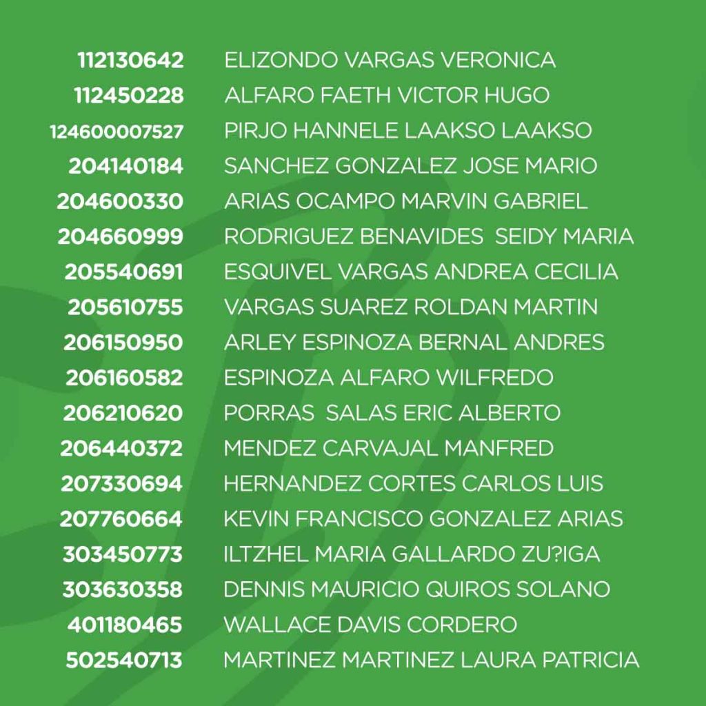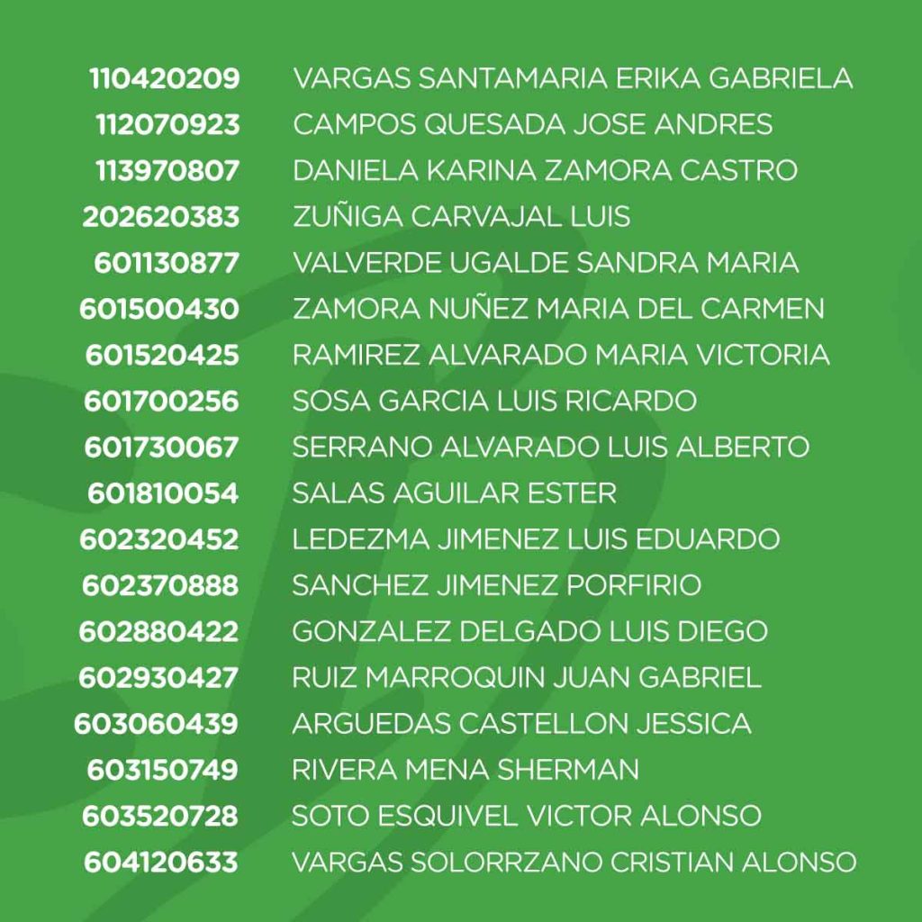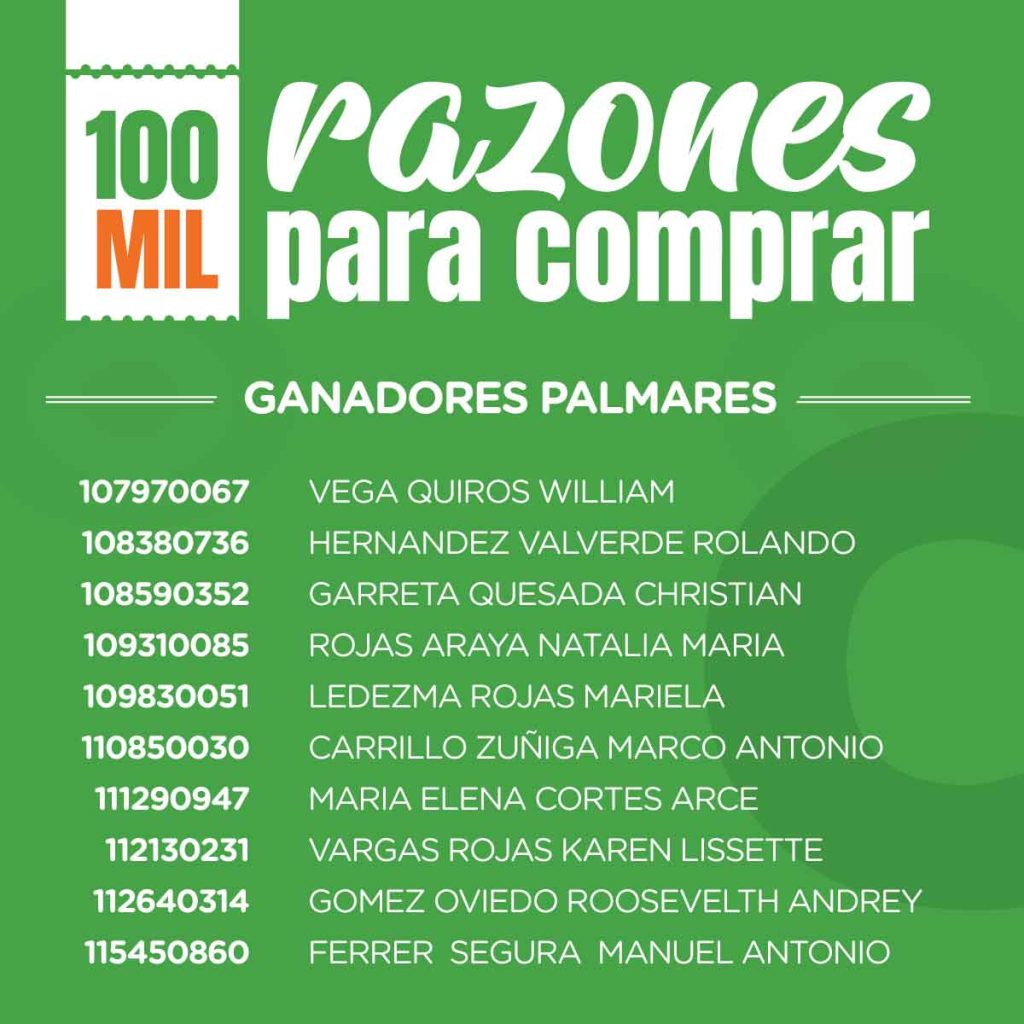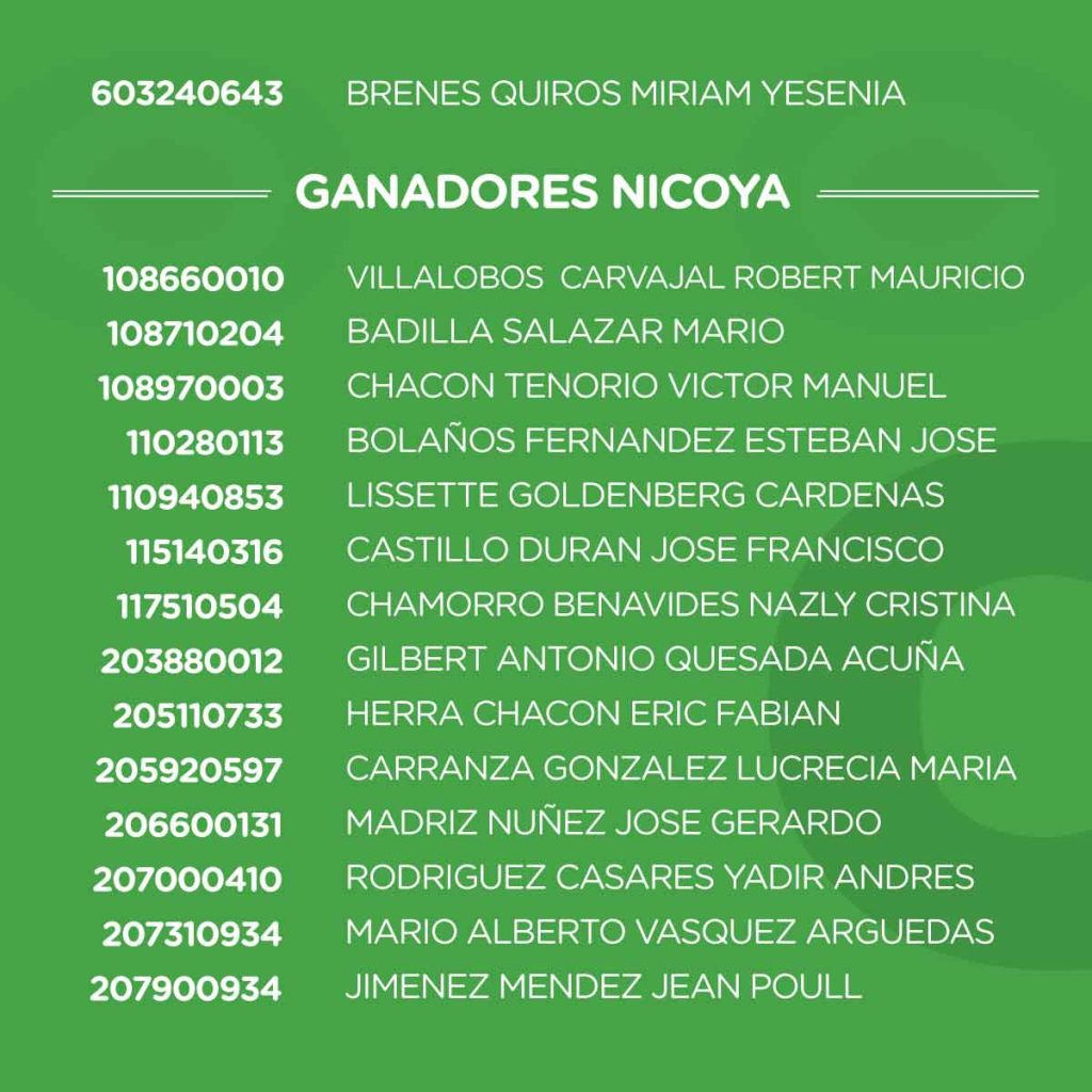 - El resultado de los ganadores(as) se dará a conocer en cada una de los puntos de venta; sea en Palmares, Esparza, San Carlos, Cañas y Grecia, mediante la publicación y exhibición de los nombres de cada uno de los mismos.